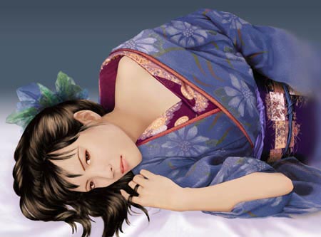 donna giapponese dai lunghi capelli neri e dal corpo nascosto sotto