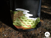 a mano libera ottenuta disegnando la scena sulla stoffa)